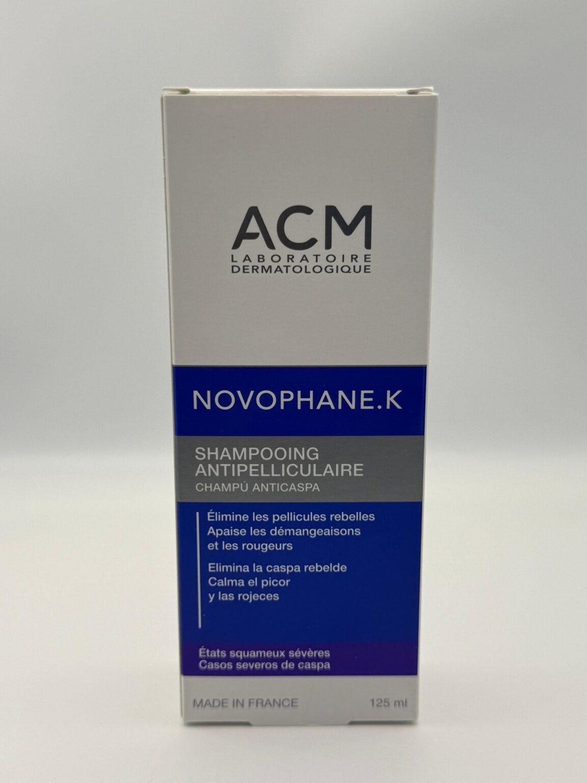 ACM Novophane.K Anti-Dandruff Shampoo, a dermatologically formulated solution for severe and chronic dandruff, scaling, flaking, and scalp irritations. It is designed to eliminate persistent dandruff while soothing itching and redness.