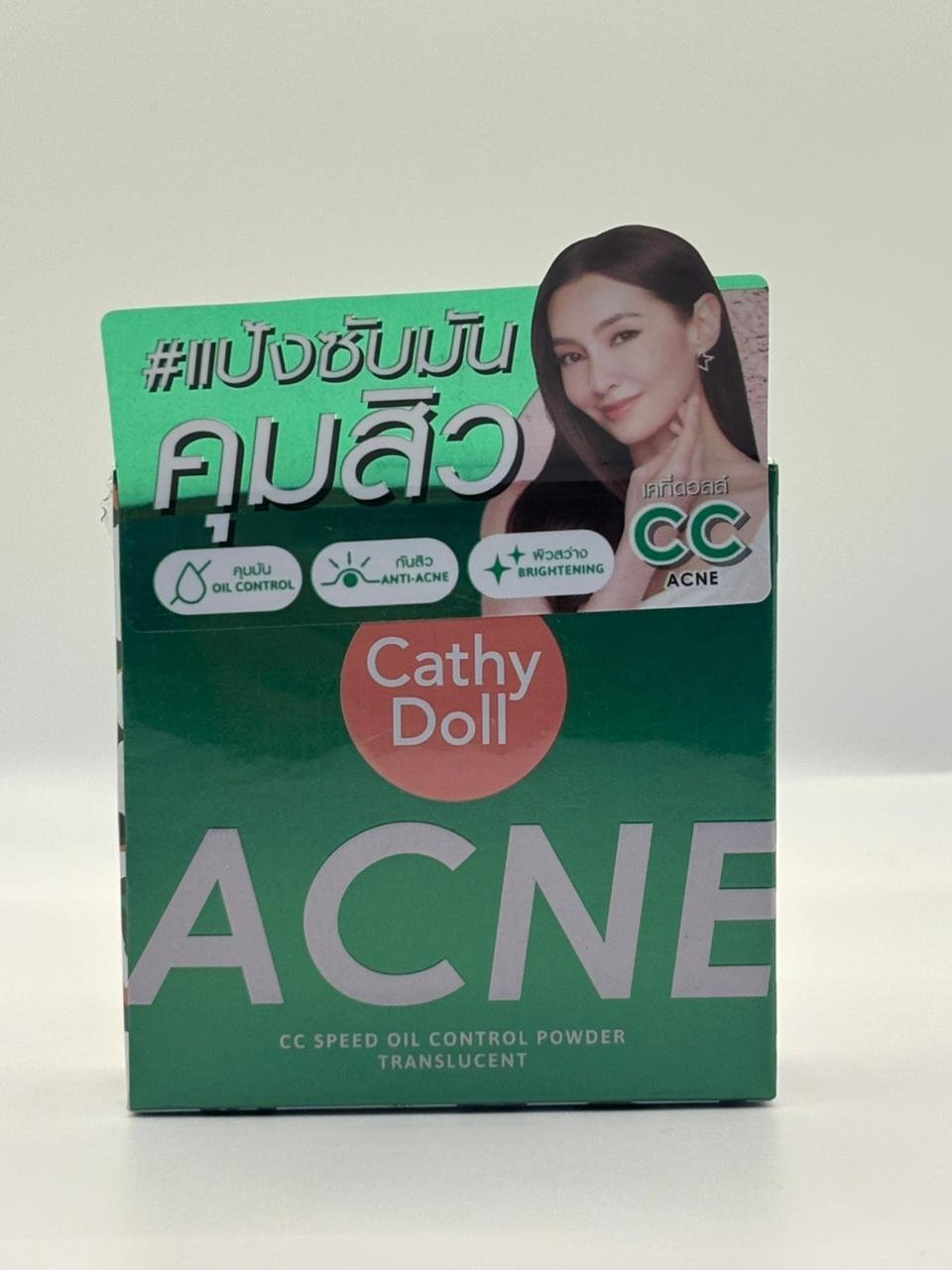 Cathy Doll Acne CC Speed Oil Control Translucent Powder, a non-comedogenic and anti-acne translucent pressed powder.