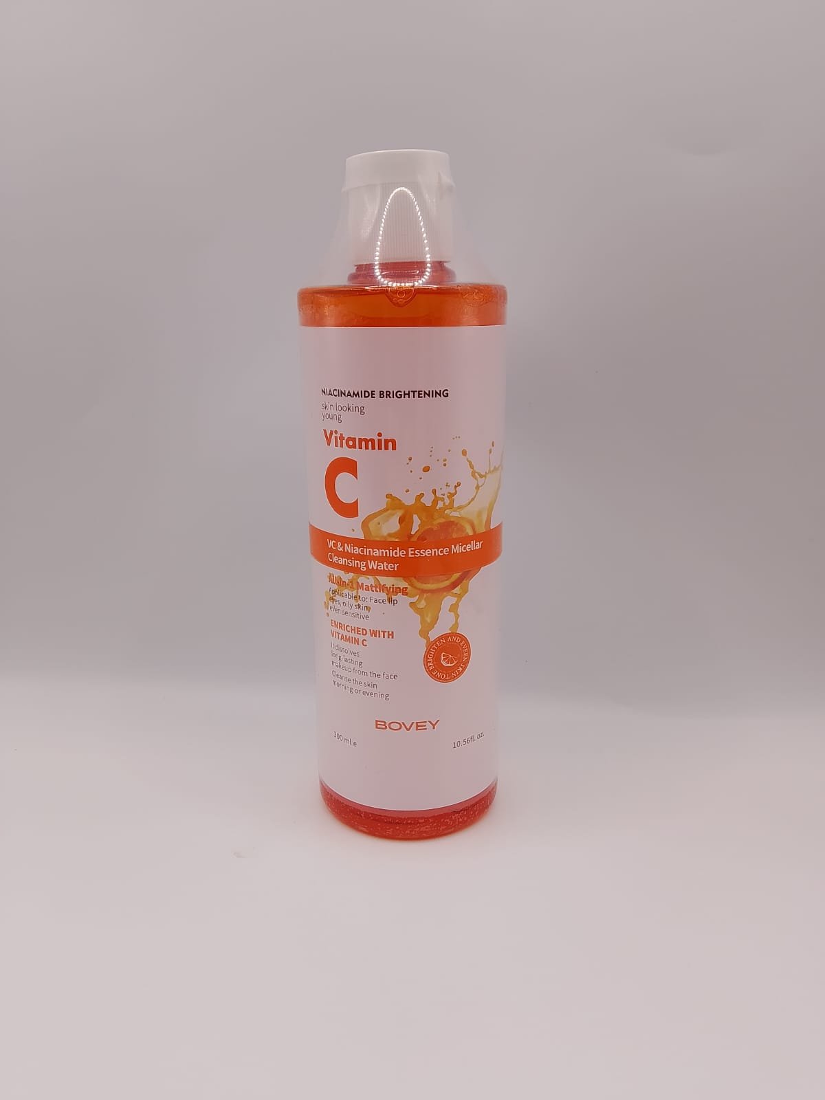 Bovey VC & Niacinamide Essence Micellar Cleansing Water. It is a skincare product that cleanses, removes makeup, and brightens the skin.Â