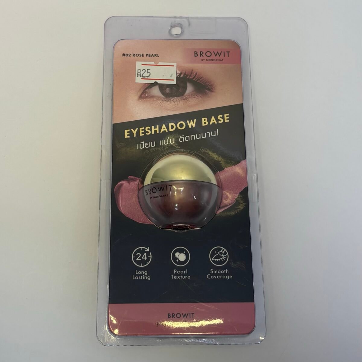 Browit Eyeshadow Base in the 5g size. It is a creamy base with a subtle sheen designed to prep and prime eyelids for enhanced eyeshadow intensity and extended wear.