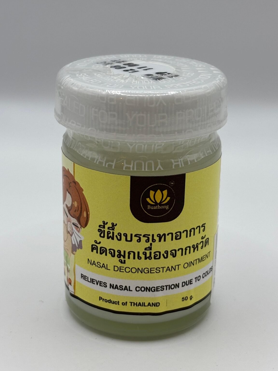 Buathong Nasal Decongestant Ointment, a Thai herbal balm.