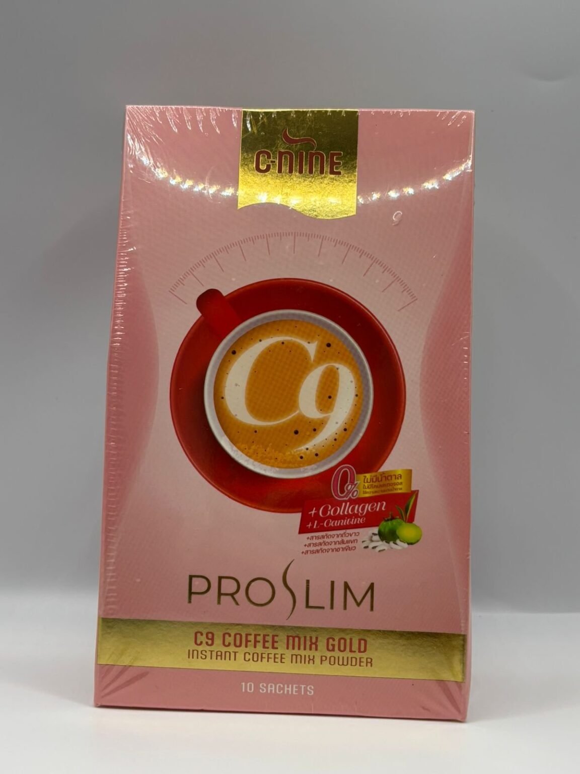 C-Nine ProSlim C9 Coffee Mix Gold instant coffee mix. It is marketed as a wellness-enhancing beverage that supports weight management and skin health.