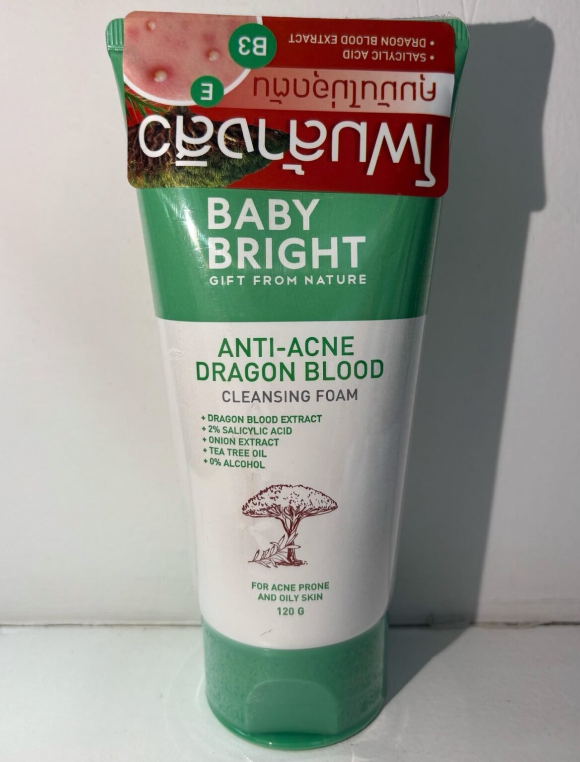 Baby Bright Clear & Treat Acne Cleansing Foam. This anti-acne facial cleanser is designed for various skin types, including oily, combination, sensitive, and acne-prone skin.