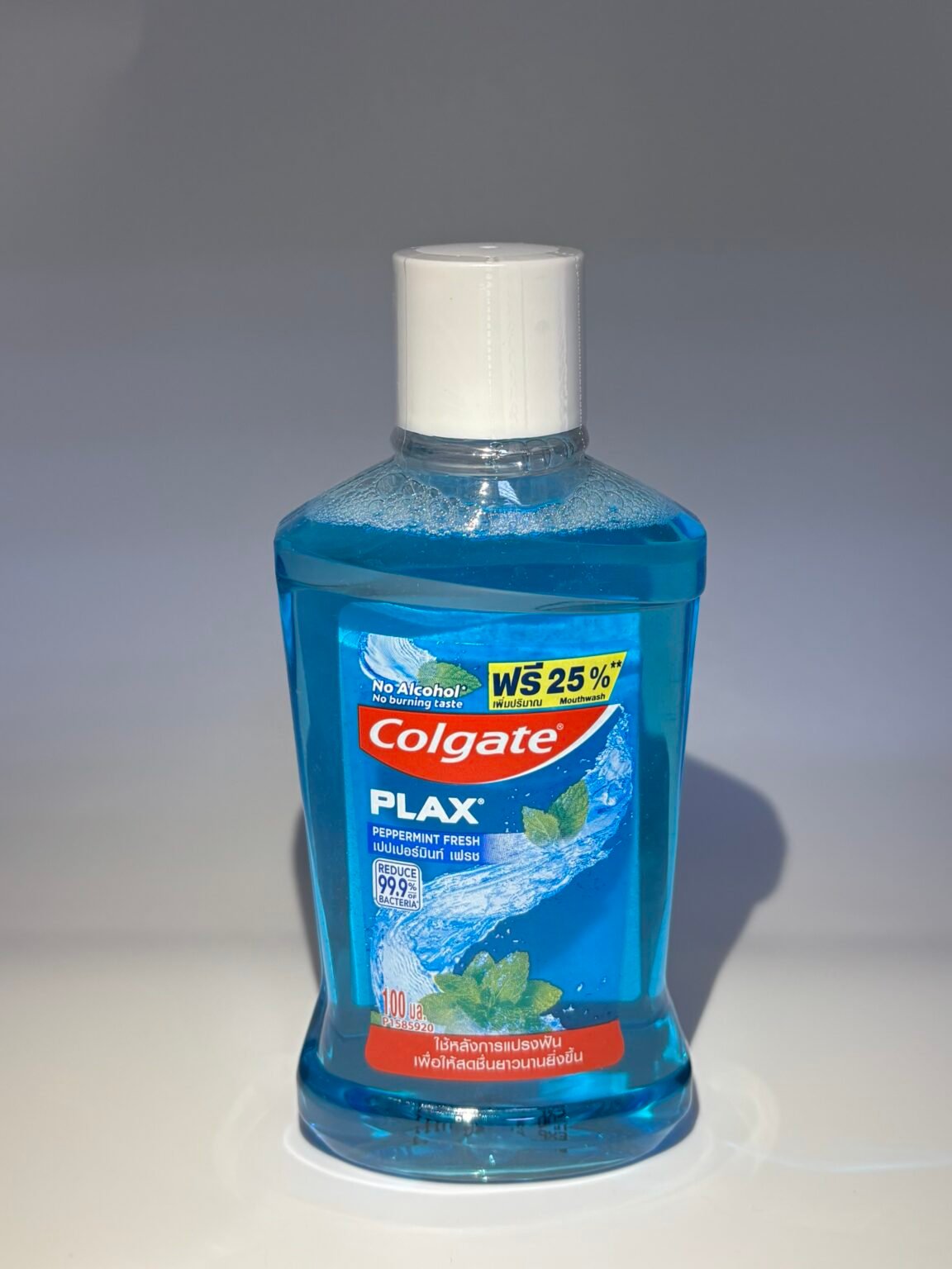 Alcohol-free, antibacterial mouthwash. It provides 12-hour protection against bacteria, helps prevent plaque buildup, and freshens breath.