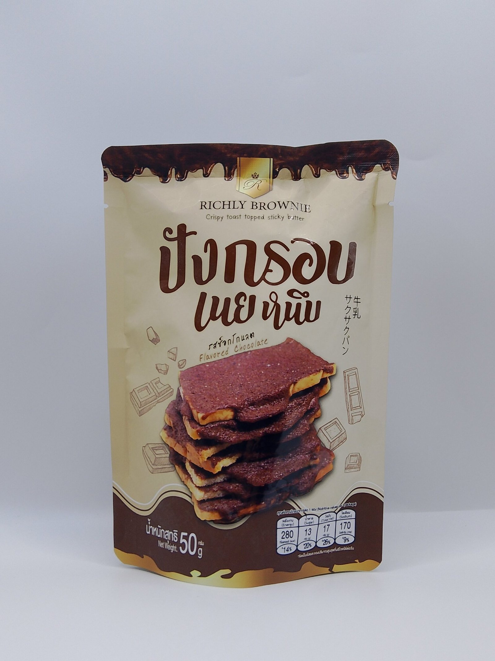 Crispy Toast Topped Sticky Butter Chocolate Flavor 50g- Richly Brownie