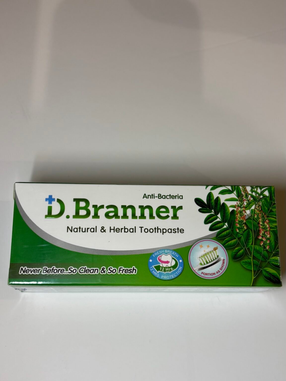 D.Branner Natural & Herbal Toothpaste, which is an anti-bacterial toothpaste formulated with natural ingredients.