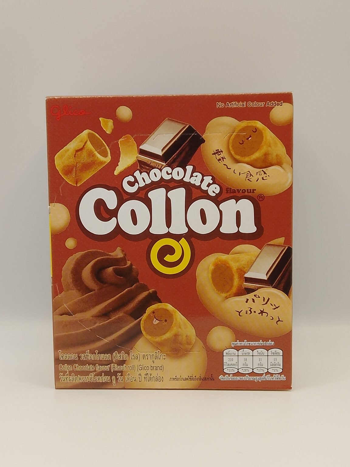 Glico Collon Chocolate cream biscuits. These are popular bite-sized snacks from Japan, often produced for the Thai market.