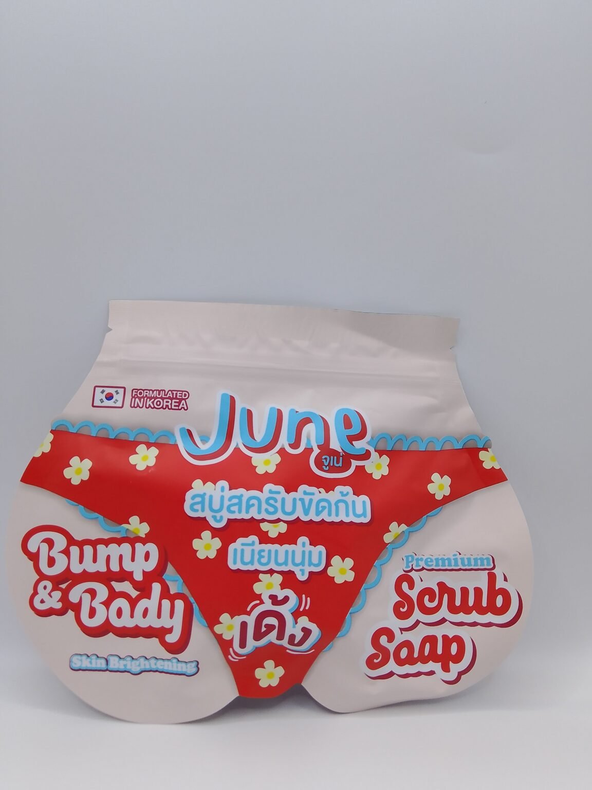 June Bump & Body Scrub Soap. It is a premium Korean scrub soap designed to cleanse, brighten, and gently exfoliate the skin.