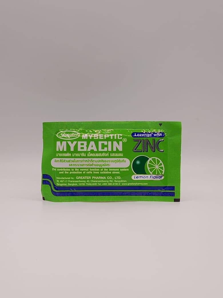 Mybacin Lozenge with Zinc, Lemon Flavor. It is designed to help relieve sore throats and provide immune support.