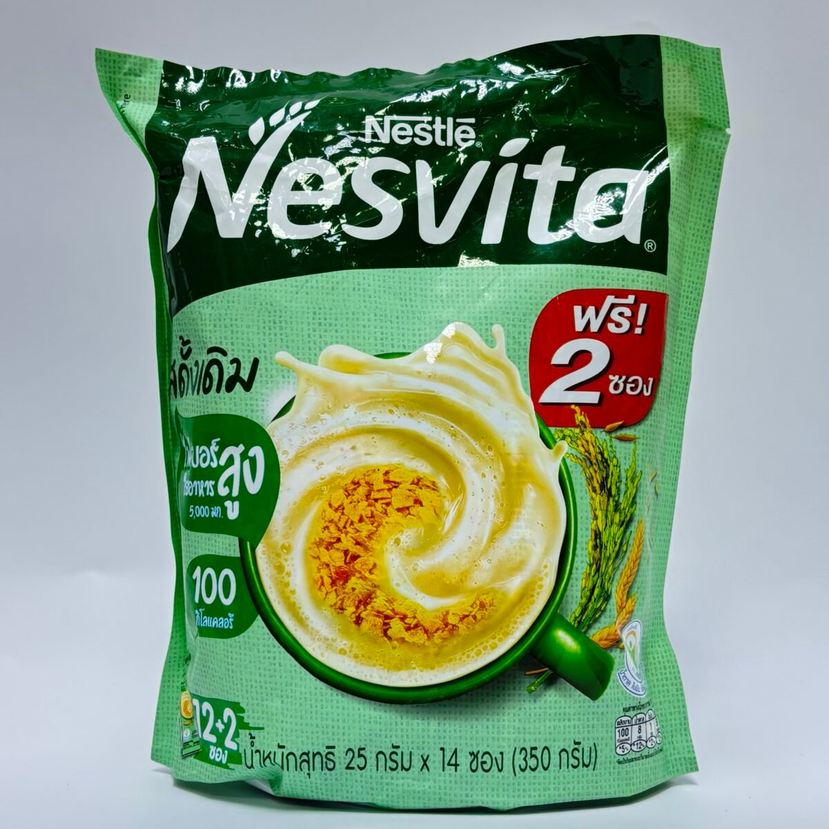 Nestlé Nesvita Instant Cereal Drink, which is a nutritious beverage made with whole grains like corn flakes and oats. It is a convenient breakfast option or snack, providing energy, high fiber, and calcium.