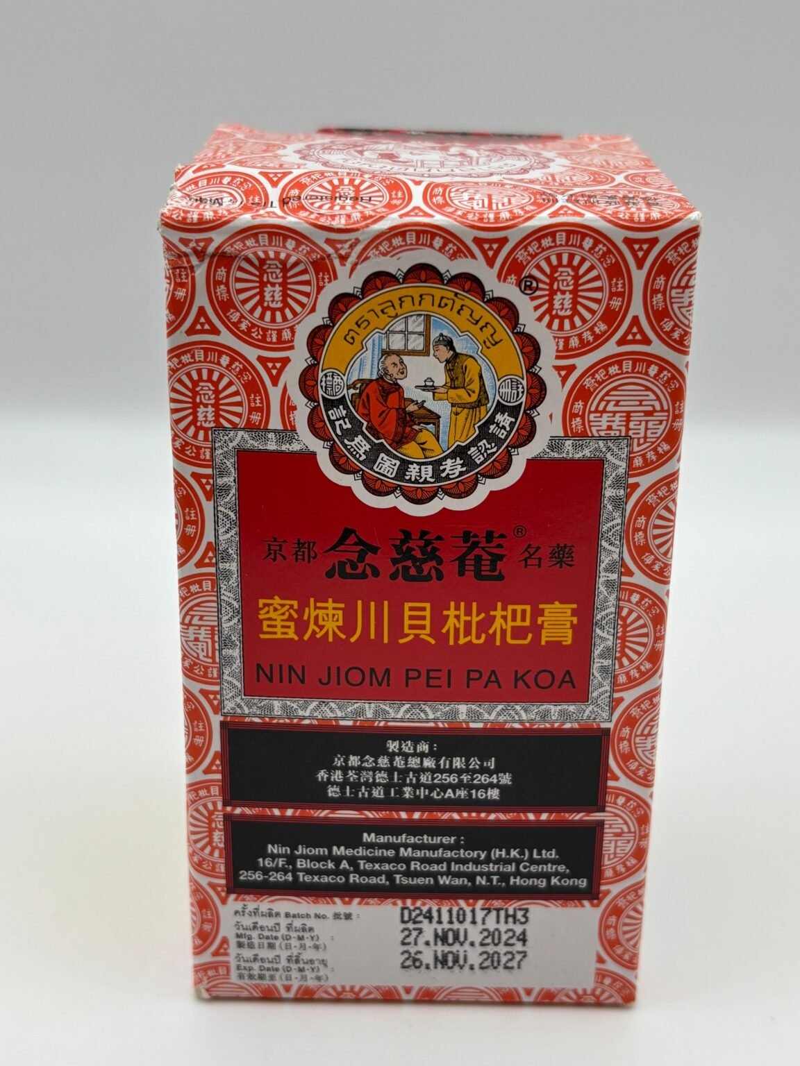 Nin Jiom Pei Pa Koa, a well-known traditional Chinese herbal remedy for throat and respiratory relief.
