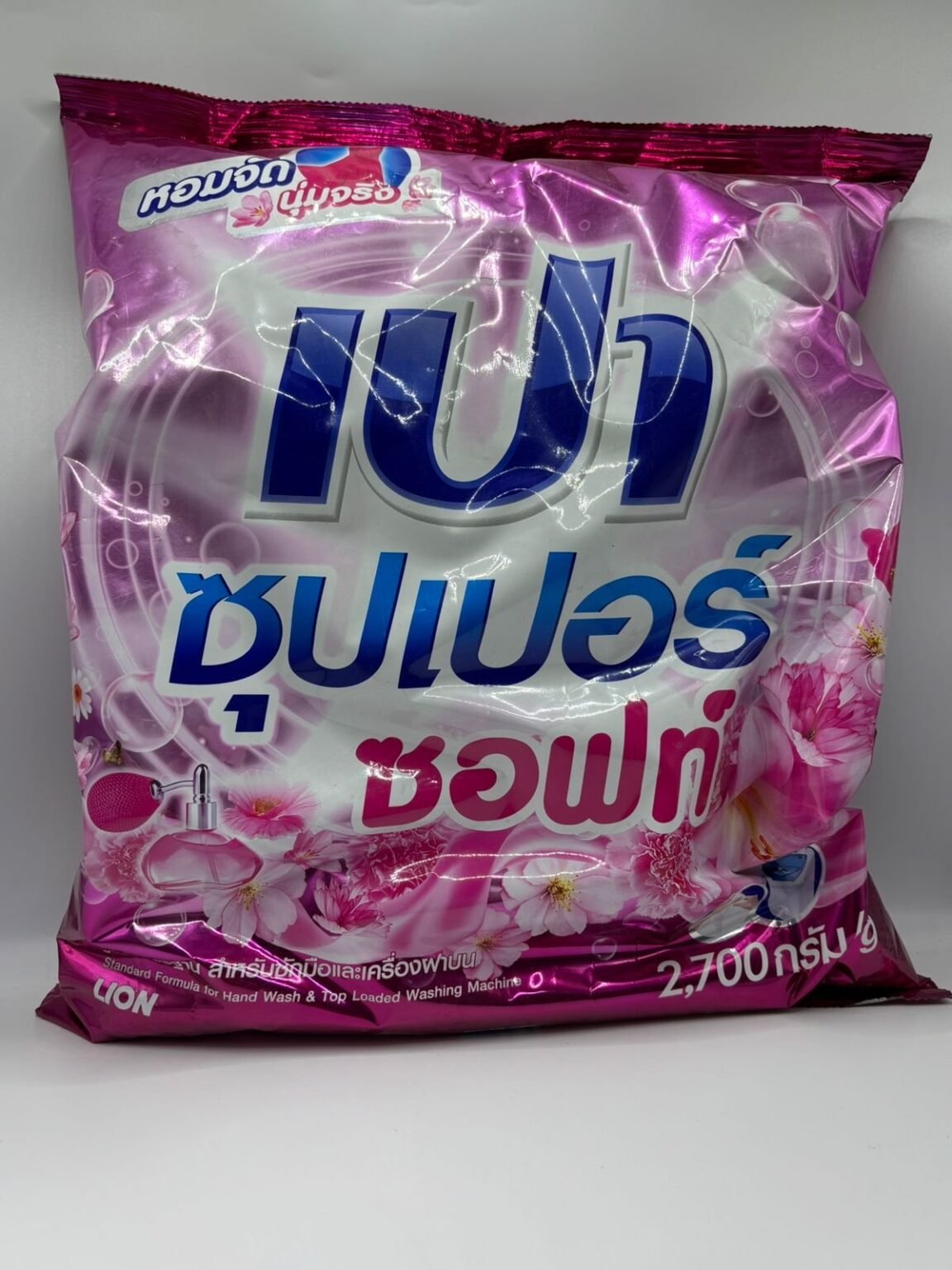 a brand of powder laundry detergent from Thailand. It is designed for both hand washing and use in top-loading washing machines, providing cleaning, softening, and a fragrant scent to clothes.