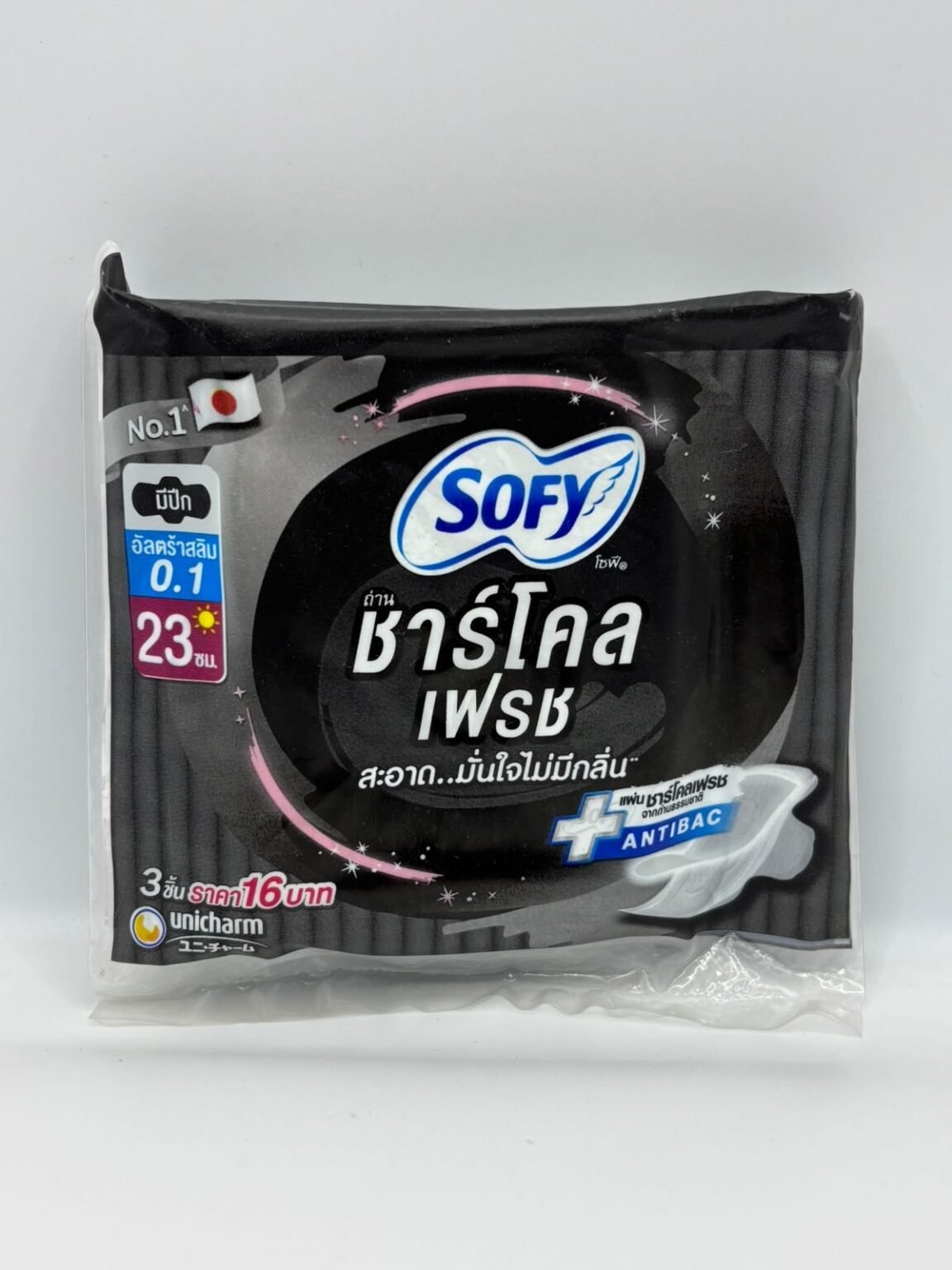 Feminine hygiene products designed for day use (23 cm length). These pads feature natural charcoal technology to neutralize odor and an antibacterial sheet that inhibits bacterial growth for enhanced hygiene.