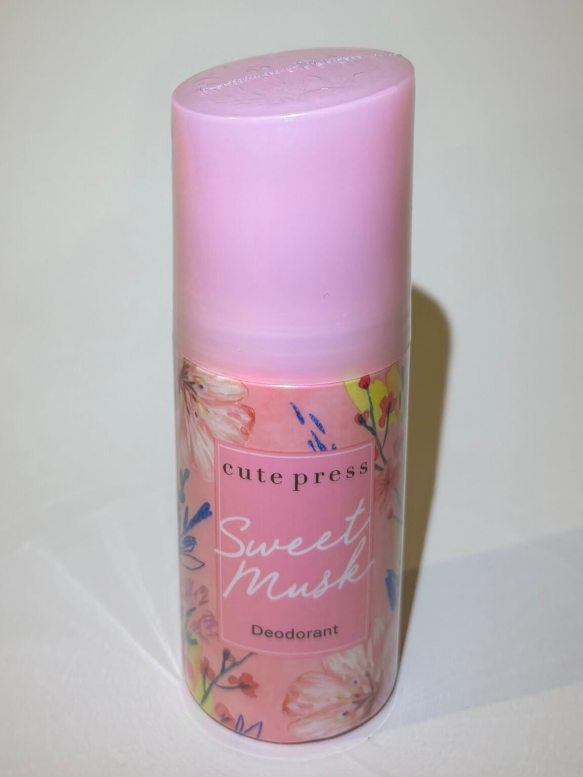 Cute Press Sweet Musk Deodorant. It is a roll-on deodorant designed to prevent or mask body odor caused by the bacterial breakdown of perspiration. It has a classic, sweet scent derived from musk, jasmine, magnolia, and wood notes, aiming to provide a soft, clean, and confident fragrance while helping to keep the underarm skin smooth and bright.