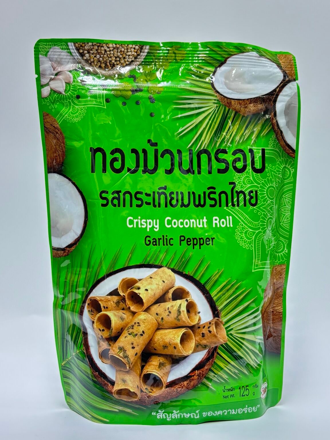 Thai Thong Muan Crispy Coconut Rolls with Garlic Pepper flavor.