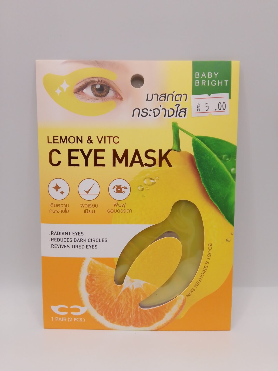 The mask is enriched with lemon fruit extract and vitamin C to brighten the skin tone and reduce dark circles.