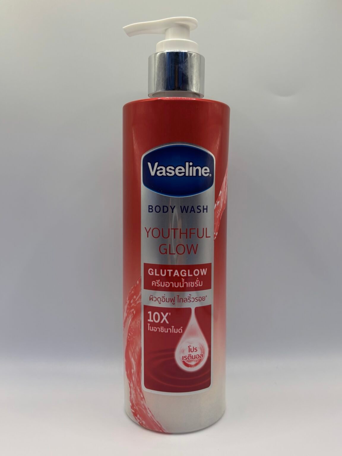 Vaseline Body Wash Youthful Glow, which uses GlutaGlow technology to help achieve radiant, youthful-looking skin.