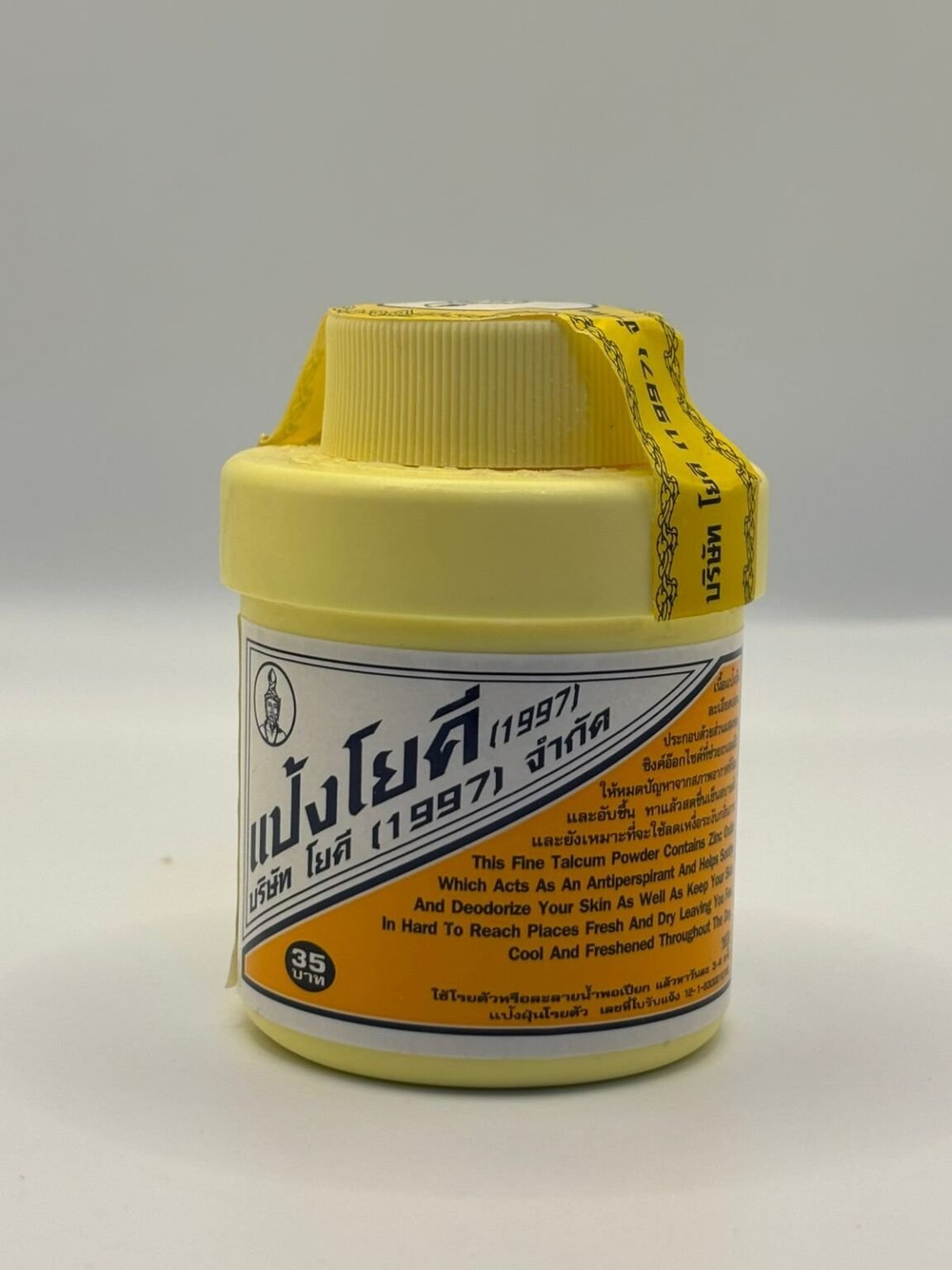 Yoki Powder, a traditional Thai talcum powder with antibacterial properties used for body care.